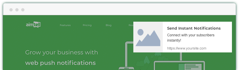 In order to start collecting website push subscribers and be able to send notifications, you’ll first need to install Aimtell. Fortunately, installing Aimtell is incredibly easy and there are several ways you can install it.