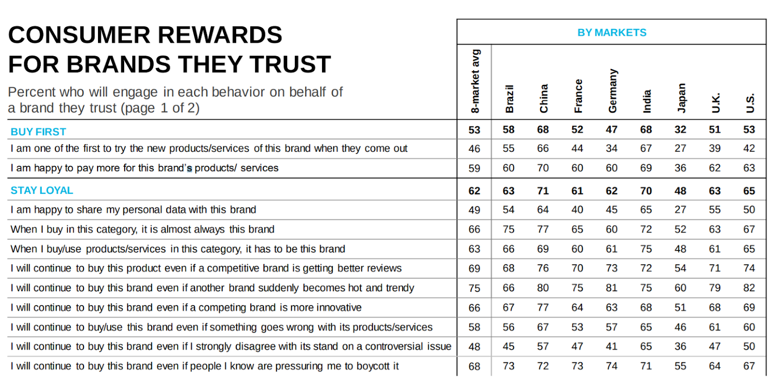 Case in point, 82% of US consumers say they would stick with a brand they trust, even if a new and potentially better provider were to come along. What’s more, 63% say they’ll spend more on brands they trust, from their very first purchase and beyond.