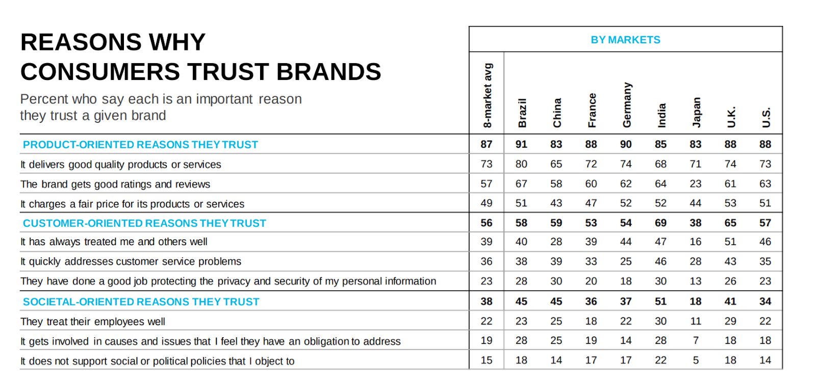 Building trust amongst your target audience is also a matter of ethical business operations. Overall, more than one-third of global consumers want to know the brands they do business with: