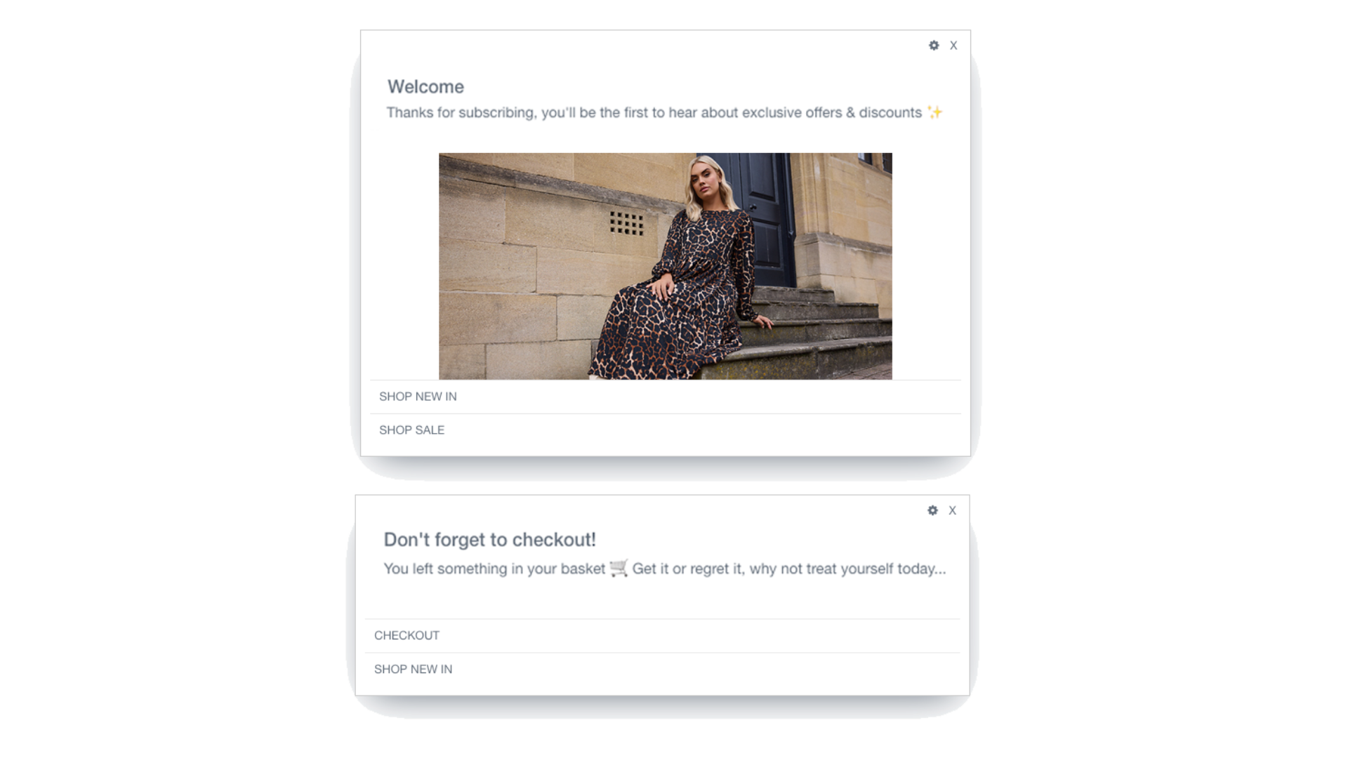 To maximize their impact during the holiday season, the clothing brand used a combination of manual and triggered push notification campaigns to reach consumers. Manual campaigns promoted discounts and gifts to engage consumers, while triggered notifications were automatically sent to bring shoppers back to the website based on specific actions, such as cart abandonment.